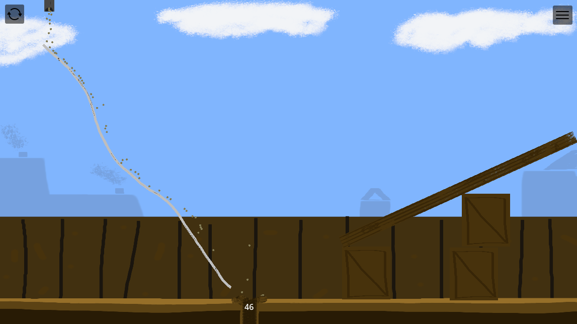 A simple physics based game where you draw with the cursor to build guiding pipes and control the fall of the dirt to fill the holes around the work site.